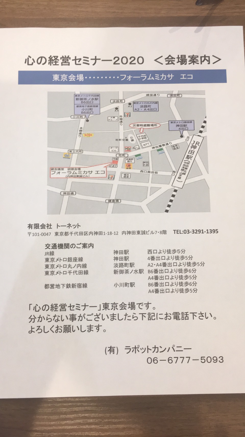 6月30日 心の経営セミナー 開催 2020 6/29 お知らせ 2020年6月29日 6月の「心の経営セミナー やさしい数字 次世代評価システム コース」は予定通りに開催させていただきます。 やさしい数字 10時半より 次世代評価システム 14時より 会場も予定通り フォーラムミカサエコで開催いたします。 よろしくお願い致します。 お知らせ よかったらシェアしてね! URLをコピーしました! URLをコピーしました! やさしい数字 と 評価システム セミナー やさしい数字 評価システム セミナー この記事を書いた人 編集者ラポットカンパニー 関連記事 田村組の勇人さんとの会食で学んだこと 2020年11月8日 7月の心の経営セミナー 2020年7月11日 やさしい数字 評価システム セミナー 2020年6月30日 やさしい数字 と 評価システム セミナー 2020年6月22日 6月の心の経営セミナー 2020年6月1日 「心の経営セミナー」受講者限定 緊急Webセミナー 2020年5月1日 5月の心の経営セミナーの日程変更につきまして 2020年5月1日 心の経営セミナー 延期日程について 2020年4月10日