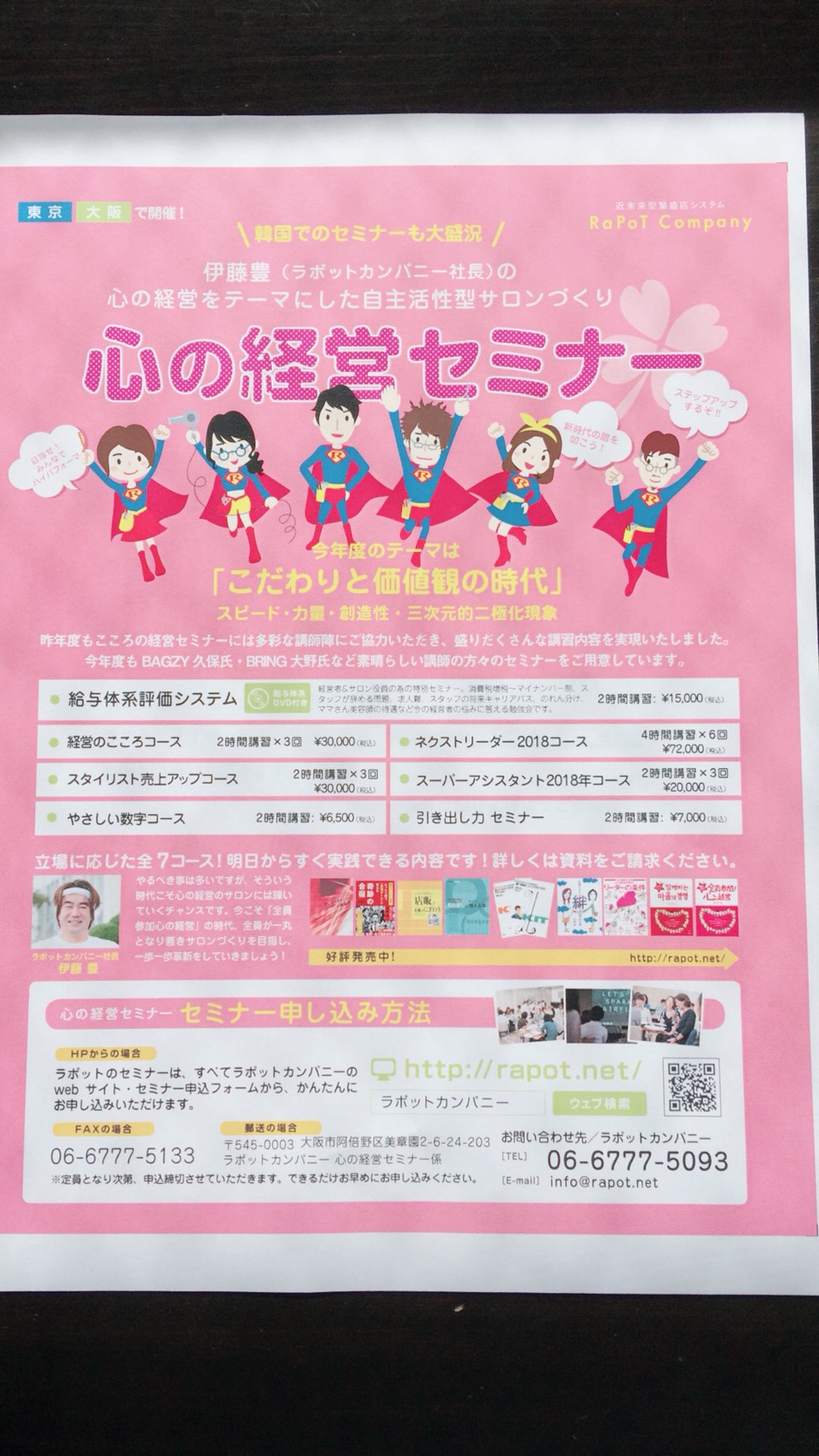 2018 心の経営セミナー 2018 1/27 お知らせ 2018年1月27日 受付始まりました! 今年度もよろしくお願いいたします。 お知らせ よかったらシェアしてね! URLをコピーしました! URLをコピーしました! 韓国の美容師さん達と再会 引き出し セミナー この記事を書いた人 編集者ラポットカンパニー 関連記事 田村組の勇人さんとの会食で学んだこと 2020年11月8日 7月の心の経営セミナー 2020年7月11日 やさしい数字 評価システム セミナー 2020年6月30日 6月30日 心の経営セミナー 開催 2020年6月29日 やさしい数字 と 評価システム セミナー 2020年6月22日 6月の心の経営セミナー 2020年6月1日 「心の経営セミナー」受講者限定 緊急Webセミナー 2020年5月1日 5月の心の経営セミナーの日程変更につきまして 2020年5月1日