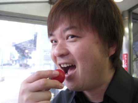 翌日、一個200円のおいしいトマトを食べる増田さん -