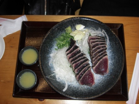 きのめ市場でその場で藁で焼いたかつおのたたきを食べました。おいしー!! -